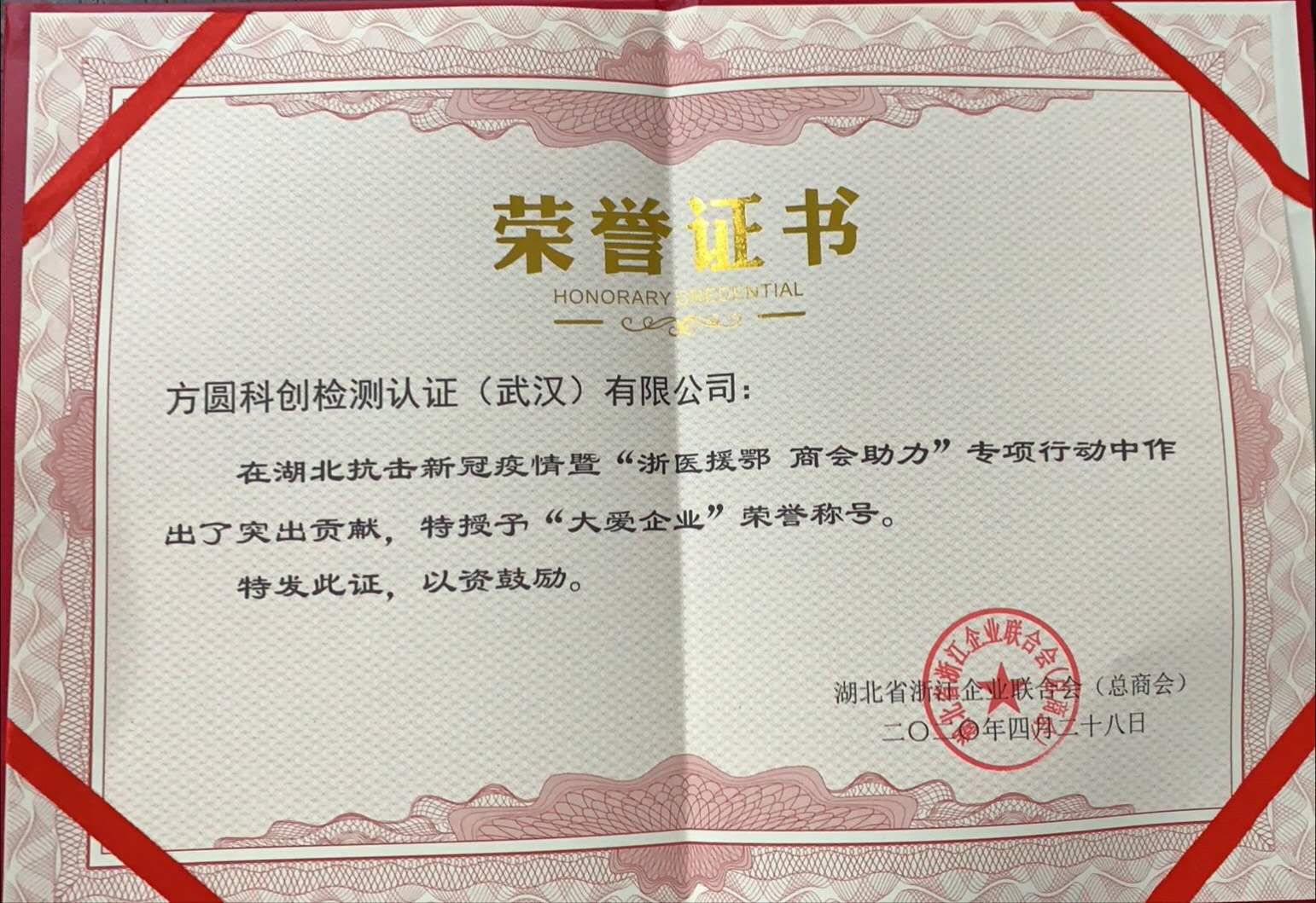 为树立典型,表彰先进,kok投注官网下载公司武汉子公司凭借在湖北抗击新冠肺炎疫情暨“浙医援鄂 商会助力”专项行动中的突出表现,被湖北省浙江企业联合会(总商会)授予“大爱企业”荣誉称号。