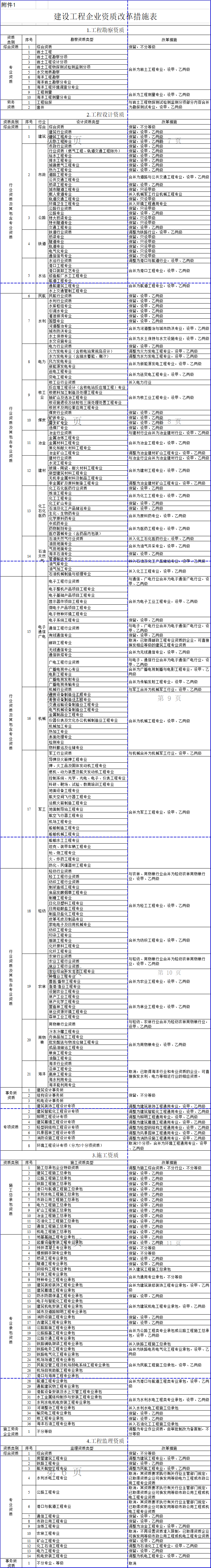 附件:1.建筑工程企业资质改革措施表