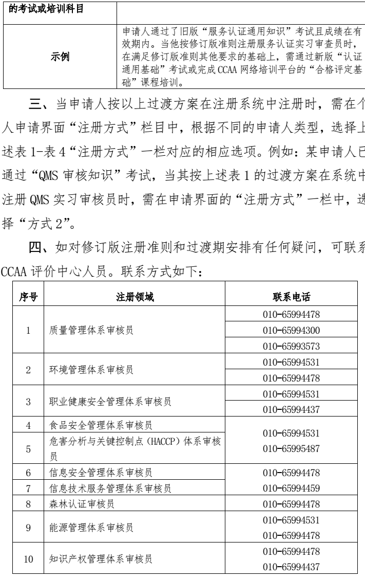 (三) 注册准则解读,过渡期政策解读,申请人员注册资格等问题,请按附件中联系电话联系。