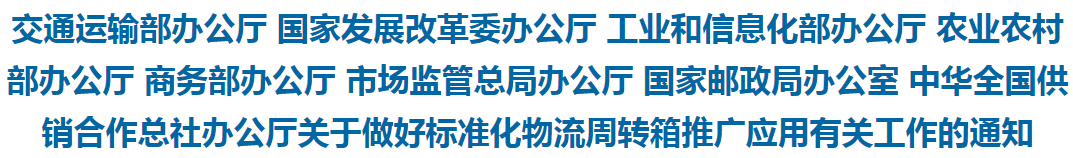 标准化物流周转箱是指具有可折叠、可循环反复使用、技术性能好、质量高且符合国家标准的小型箱式集装器,可广泛应用于农副产品、商超配送、邮政快递等多个领域。近年来,随着物流业的持续快速发展,物流包装材料使用量不断增加,造成大量资源消耗和环境污染,且包装标准不统一,严重影响了物流运输和流通效率。标准化物流周转箱循环共用可以有效替代现有纸箱、塑料袋、泡沫箱等传统包装材料,大幅减少一次性包装物用量,实现物流包装可循环、减量化,有利于改善市场环境、推进生态文明建筑。同时,物流周转箱作为标准化包装和装载单元,可以实现模块化作业、集装化运输、智能化分拣,是推进物流业实现绿色化、模块化、机械化作业的关键要素。加快推广物流周转箱循环共用,对降低货物损耗、提高流通效率,支撑物流业高质量发展具有重要意义。各地区、各有关部门要按照市场主导、政府引导的原则,加强部门协同联动和政策支持,充分调动市场主体的积极性,切实采取有效措施,健全标准体系、完善基础设施、扩大应用范围,加快构建标准化物流周转箱循环共用体系。