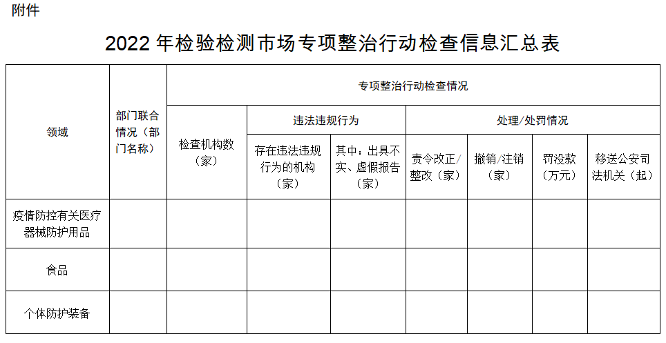 附件:2022年检验验收市场专项整治行动检查信息汇总表