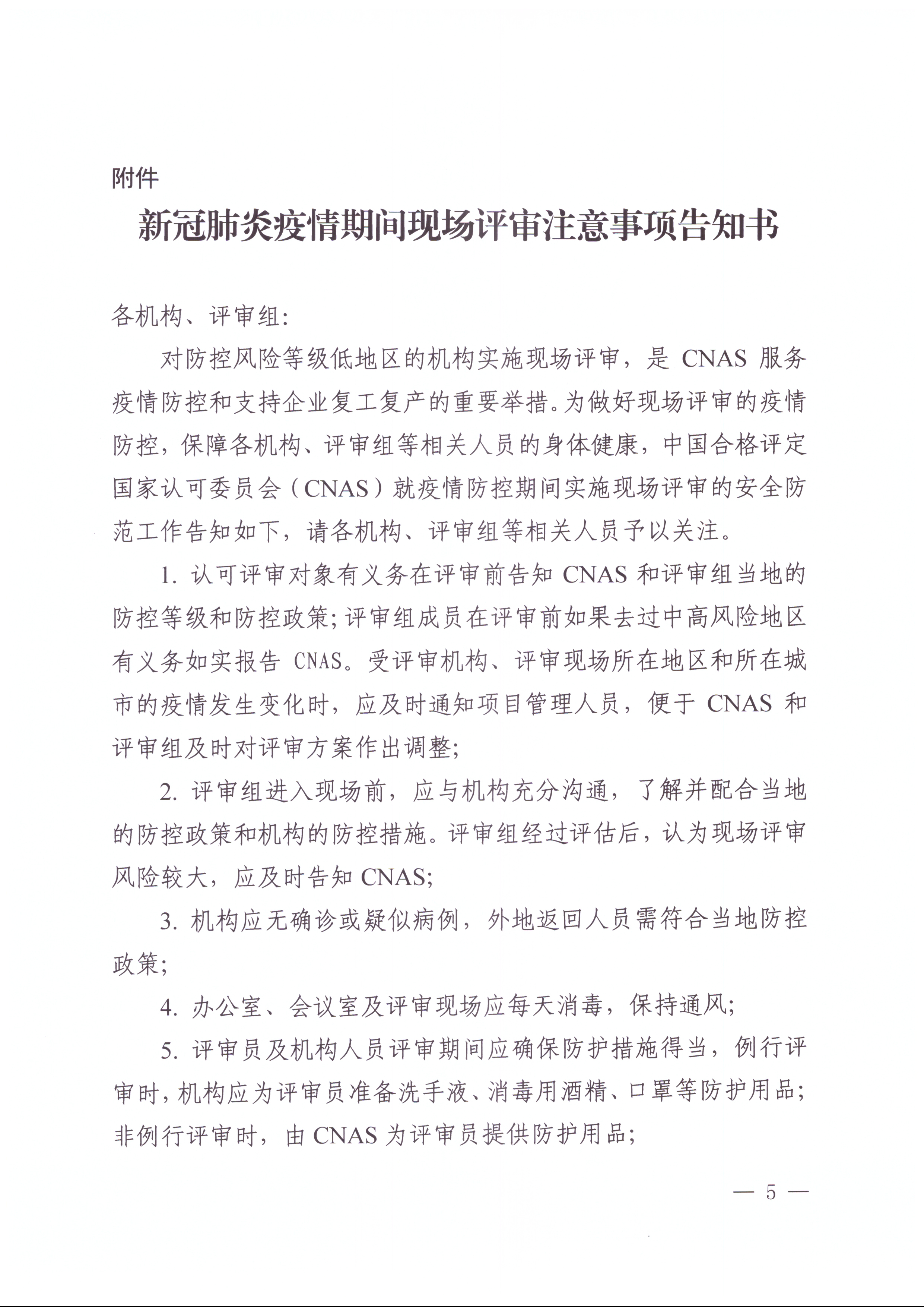 近日,中国合格评定国家认可委员会印发《常态化疫情防控下认可评审评定工作要求》,要求在落实各项疫情防控要求的前提下,做好认可评审评定派员工作。文件对认可评审评定派员总体要求、现场评审实施条件、现场评审实施安排、外派执行评审任务中遇到的问题及采取的应对措施、疫情期间外出评审发生额外费用报销规定做出了说明。具体内容如下: