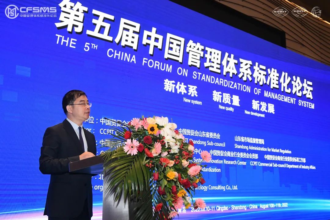 近日,以“新体系•新质量•新发展”为主题的第五届中国管理体系标准化论坛在山东省青岛市成功举办。中国贸促会法律事务部部长刘超,中国国际商会商业行业商会会长曾亚非,山东省贸促会党组成员、副会长刘晓江,山东省市场监督管理局党组成员、一级巡视员田治颖等领导出席论坛开幕式并致辞。