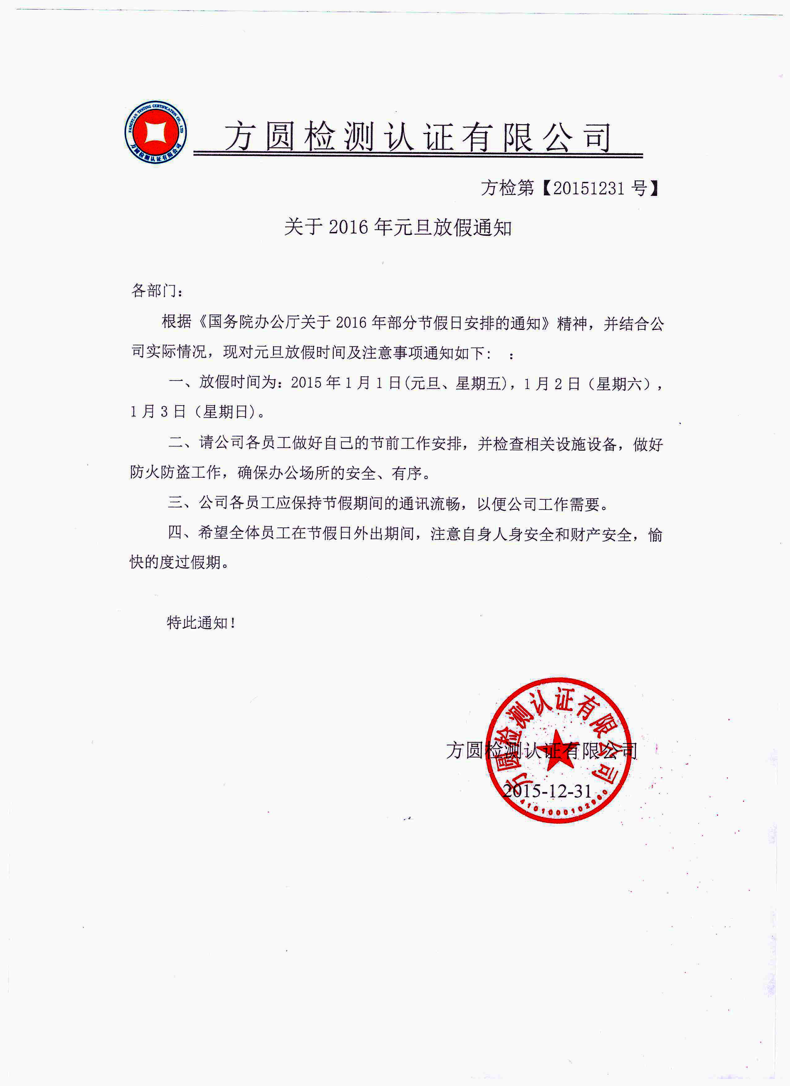 发布时间:2015-12-31 15:32:05 发布人:信息员