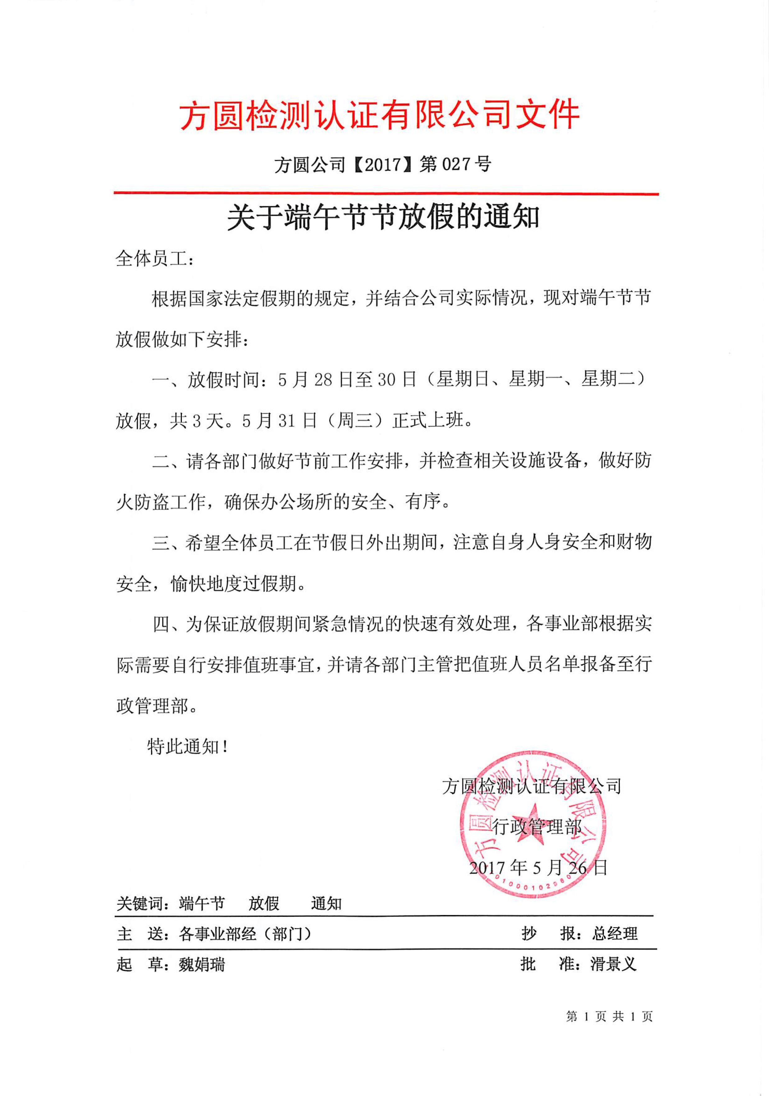 下一篇:关于2017年五一劳动节放假的通知